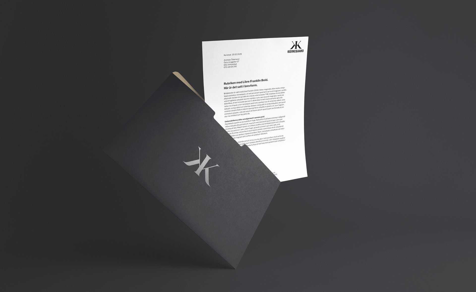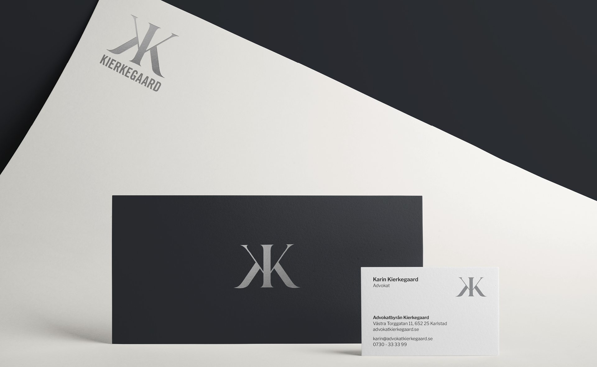 När Karin Kierkegaard tog steget från en lång karriär på advokatbyrå till att starta egen byrå behövde hon en helt ny identitet. En som både bar hennes erfarenhet och gav utrymme för framtida utveckling. Vi fick i uppdrag att skapa ett varumärke med tydlig tyngd, professionalism och trovärdighet, men som samtidigt rymde mänsklighet och värme.