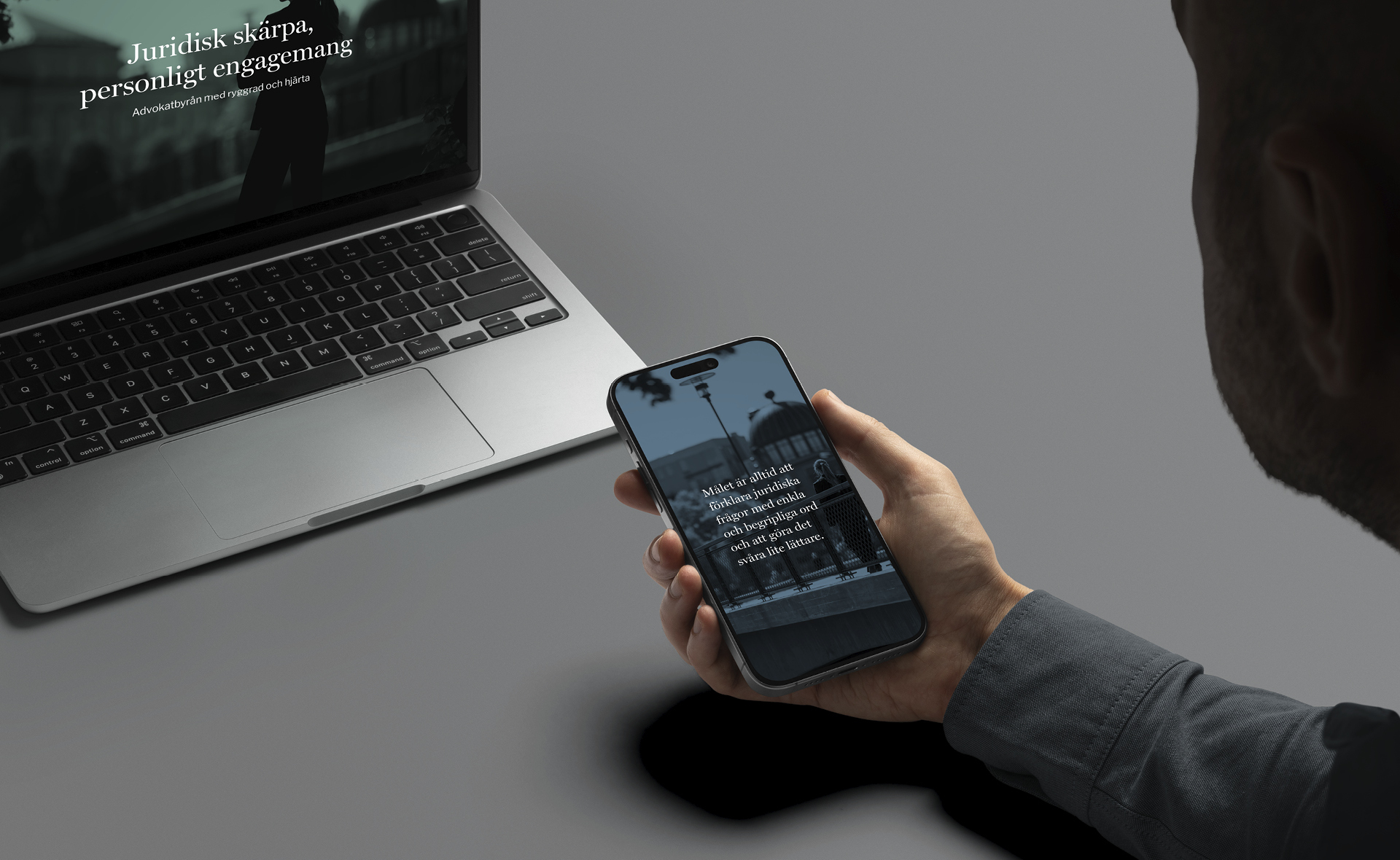 Insikten var att målgruppen, både företagare och privatpersoner, inte bara söker juridisk kompetens utan också tillgänglighet och förtroende på ett mer personligt plan. Varumärket behövde därför kännas etablerat och tryggt, men samtidigt nära och mänskligt.